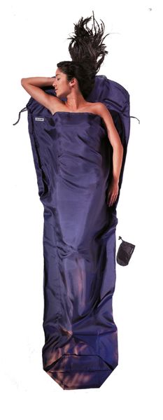 Extrem leichter, mumienförmiger Innenschlafsack zum Schutz des Schlafsackes vor Verschmutzung und zur Erhöhung seiner Wärmeleistung.