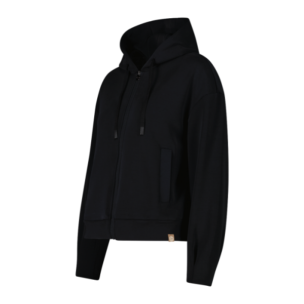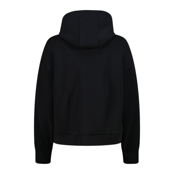 Sweatshirt für Damen mit Kapuze aus Modal, ein Kleidungsstück für alle, die Komfort, Weichheit und Funktionalität im Alltag und bei sportlichen Aktivitäten suchen. Das Modal-Gewebe wird für seine Weichheit und die Fähigkeit geschätzt, den Komfort auch nach zahlreichen Wäschen beizubehalten, ohne dass es gebügelt werden muss. Das Modell ist mit einer Kapuze mit Tunnelzug und zwei Seitentaschen ausgestattet, die sich perfekt zum Verstauen von kleinen Gegenständen oder zum Aufwärmen der Hände eignen. Mit seiner lockeren Passform bietet es Bewegungsfreiheit und Komfort und ist somit ideal für das Fitnessstudio, die Freizeit oder entspannende Momente. Ein vielseitiges Sweatshirt, das technische Leistung und tägliches Wohlbefinden kombiniert und gleichzeitig einen einfachen und funktionalen Stil beibehält.