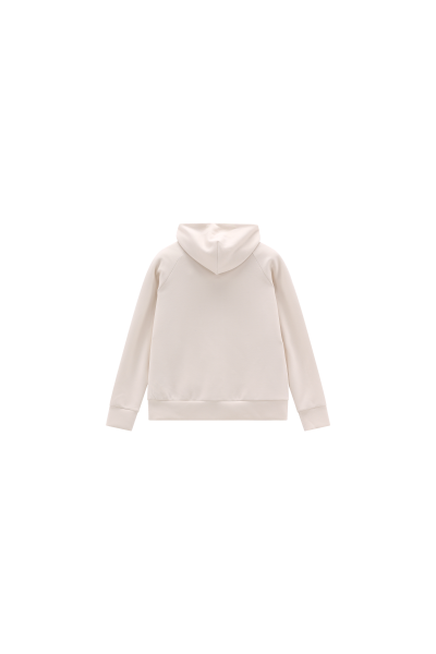 Jacke mit Kapuze aus Modal-Gewebe, ein vielseitiges Kleidungsstück, das den Komfort des elastischen Materials mit dem minimalistischen und klaren Stil des Modells kombiniert. Die Passform mit überschnittenen Schultern, der hohe Kragen und der mittige nahtverdeckte Reißverschluss verleihen dieser Jacke Sportlichkeit und Charakter, wodurch sie die ideale Wahl für einen lässigen, aber anspruchsvollen Look ist. Das Detail der beiden praktischen vorderen Taschen mit unsichtbarem Reißverschluss rundet das Modell ab.