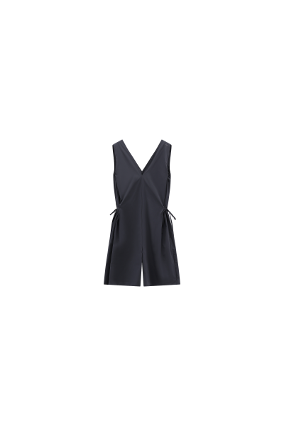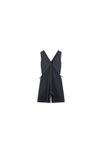 Kurzer Jumpsuit aus technischem 4-Wege-Stretchgewebe, der maximalen Komfort, schnelles Trocknen und Fleckenschutz gewährleistet. V-Ausschnitt mit Raffungen im Rücken, elastische Armausschnitte und zwei seitliche Eingrifftaschen mit unsichtbaren Reißverschlüssen. Seitliche Bänder zur Regulierung der Taillenweite und gerader Saumabschluss. Ein sportliches und zugleich stilvolles Kleidungsstück, perfekt für wärmere Jahreszeiten, in urbaner Umgebung oder bei leichten Outdoor-Aktivitäten.