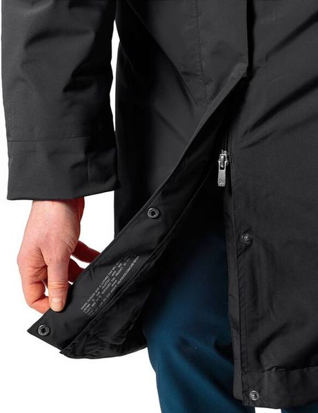 Funktionalität und Design sind hier perfekt aufeinander abgestimmt! Denn der zeitlose, urbane Coreway Wintermantel für Damen ist nicht nur super lang, warm und leicht, sondern auch noch wasserdicht, winddicht und atmungsaktiv. Möglich macht das ein Materialmix bestehend aus recyceltem Polyester und Polyamid, einer hochwertigen PrimaLoft® Black Wattierung, dem Anteil an natürlicher Wolle und einer eingearbeiteten Membran mit satten 15.000 mm Wassersäule. Der vordere zwei-Wege-Reißverschluss ist durch eine durchgehende Lasche vor Wind und Regen geschützt; die unteren Druckknöpfe am Mantel können für mehr Beinfreiheit aufgeknöpft werden. Eine Reißverschluss-Innentasche bietet Platz für Handy oder Geldbörse, die beiden vorderen Eingrifftaschen mit Reißverschluss halten die Finger schön warm. Die Wellensteppung innen sieht nicht nur toll aus, sondern sorgt auch dafür, dass das Isolationsmaterial nicht verrutscht, wenn der Wintermantel mal gewaschen wird. Das modische i-Tüpfelchen am Coreway Mantel für Damen sind der hohen Schalkragen und die schöne, mit Wollfutter ausgekleidete Kapuze. Unterm Strich ein perfekter, komfortabler Stadtbegleiter für jedes Winterwetter, der seiner Besitzerin für viele Jahre Freude machen wird. Natürlich ist auch der Coreway Wintermantel für Damen klimaneutral: Die Emissionen aus Materialien, Herstellungsprozess und Versand wurden ganzheitlich ermittelt und systematisch reduziert. Als Mitglied mit Leader Status bei der unabhängigen Organisation Fair Wear engagiert sich VAUDE für faire Arbeitsbedingungen und faire Löhne. Das VAUDE Green Shape-Label steht für ein umweltfreundliches, funktionelles Produkt aus nachhaltigen und bluesign® zertifizierten Materialien. •Langer, urbaner Wintermantel für Damen , wasserdicht, winddicht und atmungsaktiv , leicht und warm , klimaneutral; aus recyceltem Material hergestellt •2-Lagen Material, angeschnittene, weitenregulierbare Kapuze •2 Wege Front Reißverschluss •Front Reißverschluss mit einfachem Flap und Untertritt •2 Fronttaschen mit Reißverschluss •wasserdicht •Regular fit