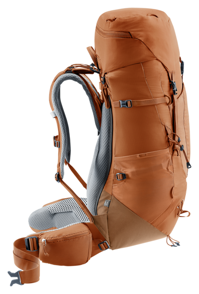 Der leichter Trekkingrucksack für ambitionierte Fernwanderinnen ermöglicht dank praktischer VariQuick-Rückenlängenverstellung und passgenauer ECL-Hüftflossen stabilen und komfortablen Halt und effektive Übertragung hoher Lasten. Der Aircontact Lite Kontaktrücken aus offenporigem Funktionsschaum mit Belüftungskanal bietet nicht nur spürbar gute Belüftung, sondern auch Platz zur Entlastung der Wirbelsäule. Das Ergebnis: Eine tolle Balance aus angenehmen Tragekomfort und geringem Eigengewicht für lange Tage zu Fuß in unberührter Natur. •Perfekte Lastübertragung durch den X-Rahmen, Leichtgewicht, Gepolsterter Hüftgurt, VariQuick System, Pull-Forward Hüftflossen, Lageverstellriemen, Stufenlos verstellbarer Brustgurt, elastische Fronttasche, Elastische Seitentaschen, Deckeltasche, Höhenverstellbarer Deckel, Schlaufen für Helmhalterung (Helmhalterung als Zubehör verfügbar), Stretch-Innenfach zum Verstauen nasser Kleidung oder der Trinkblase, Innenfach zur sicheren Unterbringung von Wertgegenständen, SOS-Label mit Notrufnummern, Separates Bodenfach mit aufzippbarem Zwischenboden, Pickelhalterung, Stockhalterung, Vorrichtung für Trinkblase (bis 3.0 Liter), anschmiegsame Hüftflossen, Abnehmbarer Rucksackdeckel •PFC frei