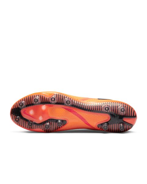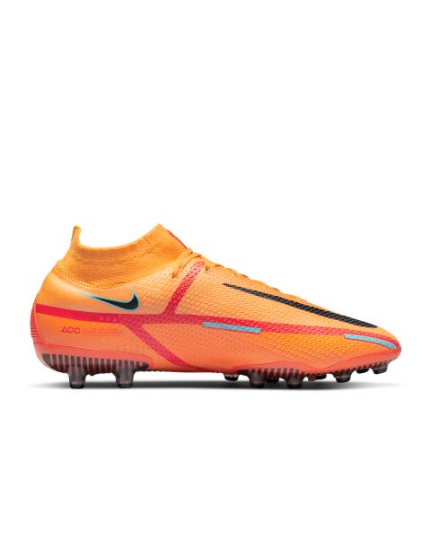 Als Basis für den Nike Phantom GT2 Elite AG-Pro diente der Phantom GT. Das aktualisierte Design und das erhöhte Profilmuster ermöglichen einen optimalen Spin, um die Flugbahn des Balls zu steuern. Das seitliche Schnürsystem sorgt für einen freien Ballkontakt-Bereich für gekonntes Dribbeln, Passen und Schießen. Ballgefühl bei jedem Wetter Die All Conditions Control-Technologie (ACC) garantiert ein optimales Ballgefühl bei nassen und trockenen Bedingungen. Dadurch behält die Oberfläche das gleiche Maß an Reibung, um eine bessere Ballkontrolle zu gewährleisten. Optimales Ballgefühl Die Flyknit-Konstruktion umschließt deinen Fuß mit elastischen Garnen und sorgt so für eine leichte, sockenähnliche Passform. So erhältst du den Halt, den du benötigst, um Gegner mit schnellen Richtungswechseln zu überlisten. Übernimm die Kontrolle Die griffige Struktur an der Oberseite ist strategisch platziert und ermöglicht ein präzises Ballgefühl beim Schießen, Passen und Dribbeln. •Ideal für den Einsatz im Freien auf Kunstbelägen •Gedämpfte Innensohle