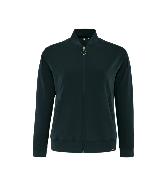 Freizeit-Jacke, Bomberkragen in anschmiegsamem weichem Material, durchgehender Front-Reißverschluss , Ärmel mit überschnittenen Schultern, 2 Reißverschluss-Leistentaschen, Ärmel- und Saumabschluss mit elastischer 2:2-Rippe, für eine anliegende und bequeme Passform.