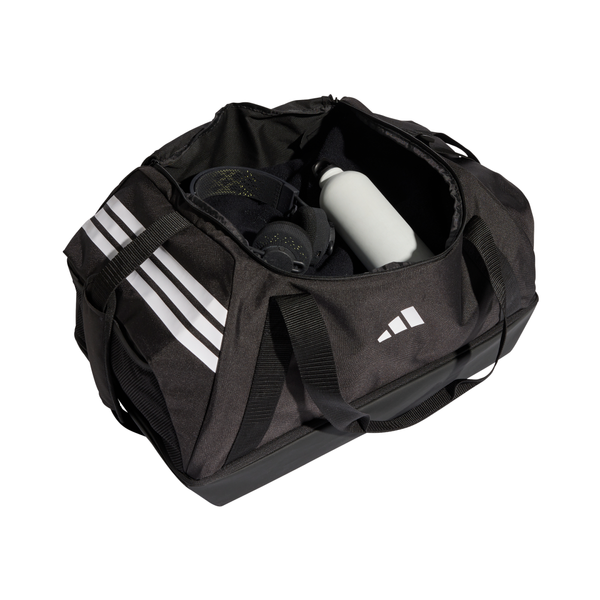 Die mittelgroße Tiro Duffelbag mit Bodenfach ist perfekt für deine Fußballreisen. Das große Hauptfach mit Reißverschluss erleichtert das Packen und sorgt dafür, dass deine Essentials immer griffbereit sind. Ein separates Fach im Boden bietet Platz für Schuhe oder nasse Ausrüstung, damit alles übersichtlich verstaut und ready ist. Die Tasche ist aus strapazierfähigem, einfach gewebtem Material gefertigt und hält den Anforderungen beim Training und auf Reisen mühelos stand. Das Performance Logo setzt einen farblichen Kontrast. Die Tasche kombiniert praktischen Stauraum mit cleanem Fußball-Style.