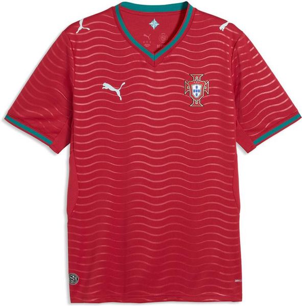 Mit dem Heimtrikot Portugals spürst du die Kraft des Ozeans und die Energie eines Teams, das bereit ist, auf der großen Bühne Wellen zu schlagen. Die rote Grundfarbe trifft auf wellenartige Muster und grüne Akzente, die die Verbindung des Landes zum Meer und seine furchtlose Energie symbolisieren. Ein Design für alle, die geboren wurden, um die Welt zu entdecken und mit Herzblut zu spielen – por amor à camisola. Dieses Replica Trikot wurde für die Fans entworfen und bietet den Spieler-Look in einer Version mit lässiger Silhouette, Details und Materialien für Spieltag und Alltag.