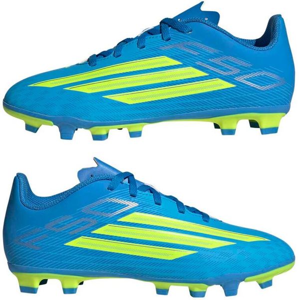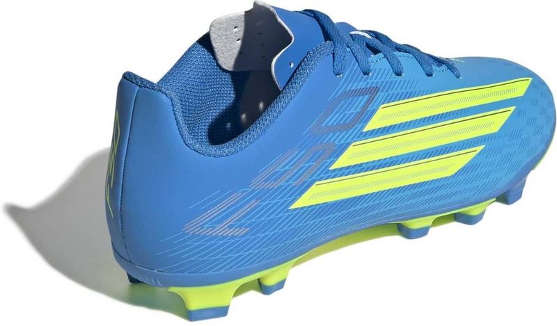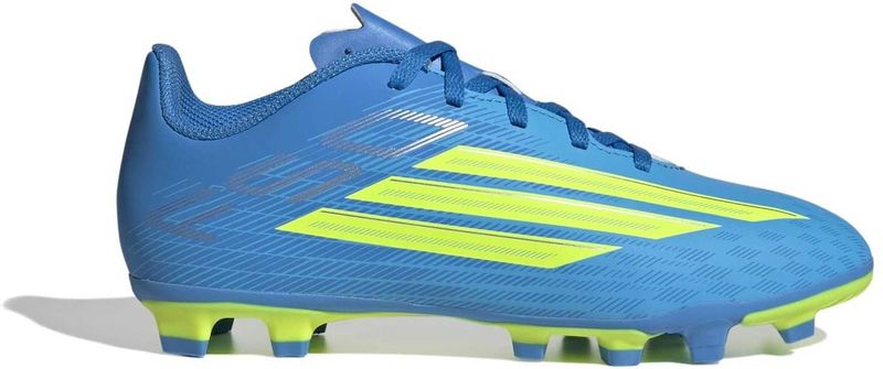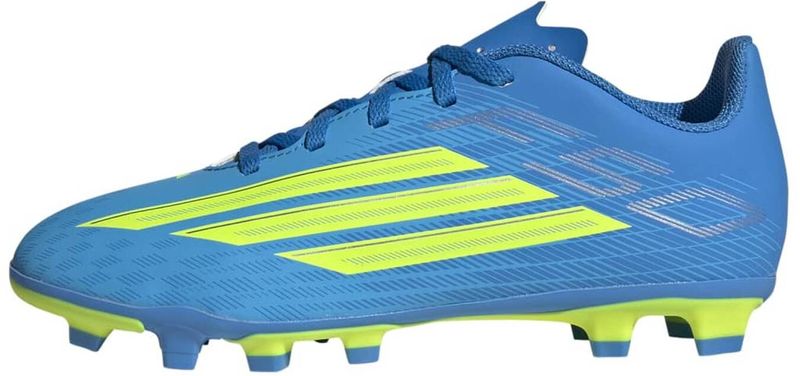 Der F50 Club Firm Ground / Multi Ground Fußballschuh bietet Kids die Schnelligkeit und Präzision, die sie brauchen. Die FXG Außensohle wurde für feste und verschiedene andere Bodenarten entwickelt und schenkt optimalen Grip, Stabilität und Beweglichkeit auf Natur- und Kunstrasen. Das strukturierte Synthetik-Obermaterial punktet mit einer weichen, bequemen Passform, während die leichte Synthetikzunge mit Stanzlöchern die Luftzirkulation verbessert. Mit einem Schnürverschluss für sicheren Halt und dem F50 Logo auf der Ferse des Schuhs liefert dieser adidas Fußballschuh angehenden Fußballstars sowohl Style als auch Leistung.