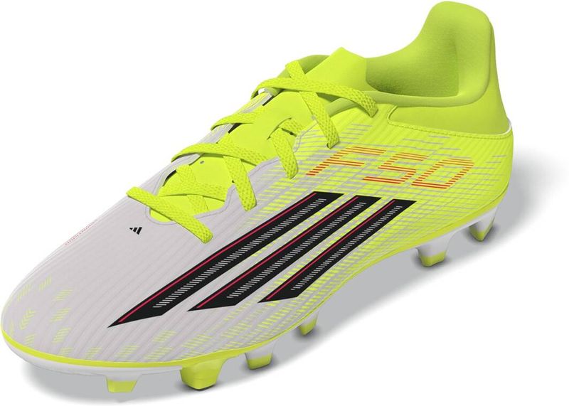 Der F50 Club Fußballschuh für feste/gemischte Böden ist ideal für gewagte Spielzüge auf dem Spielfeld. Er ist auf Unterstützung und Präzision ausgelegt und liefert Leistung bei jedem Schritt. Das Fiberskin Obermaterial verfügt über strategisch platzierte 3D-Linien, die das Ballgefühl verbessern und ein besonders leichtes Tragegefühl vermitteln. Mit diesem Schuh wirst du von einer erhöhten Wendigkeit und weniger Reibung profitieren. Die Sprintgrid Technologie ergänzt das Modell um einen 2D-Print am Schmutzfang, der von Profi-Designs inspiriert ist. Durch die Kombination von High-Performance-Optik und strapazierfähiger Konstruktion spielst du selbstbewusster und bist so schnell, wie du dich fühlst. Die synthetische, frei liegende Zunge verfügt über Perforamtionen, die die Luftzirkulation und den Komfort erhöhen. Jetzt kannst du bei jedem Spiel alles geben und spüren, wie deine Füße vom Anpfiff bis zur letzten Minute angenehm kühl bleiben. adidas hat jedes Detail dieses Schuhs auf Kontrolle und Komfort abgestimmt, damit du dich ganz auf deine Leistung konzentrieren kannst. Er ist für alle gedacht, die das Tempo auf dem Spielfeld lieben, und bringt frische Energie in jedes Spiel.
