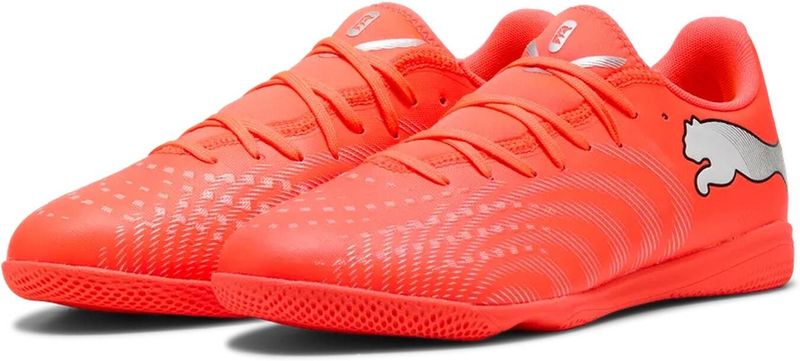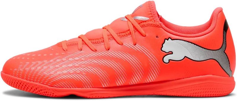 Spielmacher, entfesselt eure Kreativität mit FUTURE 9 PLAY. Das leichte Obermaterial aus Synthetik mit elastischer Slip-on-Zunge bietet Komfort, Halt und Strapazierfähigkeit, während die gezielten Prägungen im Obermaterial für zusätzlichen Grip am Ball sorgen. Die flache, abriebfeste Gummi-Indoor-Außensohle ermöglicht es dir, Verteidiger mühelos abzuschütteln.