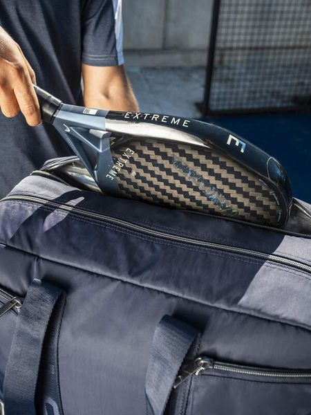 Verbessere dein Spiel und deinen Stil mit der neuen PRO PADEL TOTE BAG 35L NV, die speziell für Padel-Spieler, Sportbegeisterte und Reiselustige entwickelt wurde. Diese elegante marineblaue Tasche besticht durch eine hochwertige und vielseitige Ästhetik, die durch das geprägte HEAD-Logo auf den Tragegurten zusätzlich aufgewertet wird. In dieser strapazierfähigen und leichten Tasche trifft anspruchsvoller Stil auf moderne, intelligente Funktionalität. Sie ermöglicht es dir, deine Schläger, Ausrüstung sowie weitere wichtige Utensilien und persönliche Gegenstände mühelos zu transportieren und zu schützen. Ein spezielles Fach bietet Platz für bis zu drei Schläger und ist mit der CCT+ Klimakontrolltechnologie ausgestattet, die sie vor extremen Temperaturen schützt. Neben zwei Hauptfächern verfügt die Tasche über zwei außenliegende Reißverschluss-Zubehörfächer, ein innenliegendes Reißverschluss-Zubehörfach sowie ein Laptopfach. Dank des separaten Schuhfachs kannst du getragene Schuhe getrennt vom Rest deiner Habseligkeiten aufbewahren.