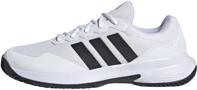 Die GameCourt 2 Tennisschuhe sind für alle gedacht, die Schlägersportarten lieben. Diese Turnschuhe sind vielseitig und praktisch, und bieten Freizeitspielern eine Mischung aus Leistung und Stil. Sie sind regulär geschnitten und bieten eine Standard-Passform, die weder zu eng noch zu locker sitzt. Der Schnürverschluss ermöglicht es dir, die Passform so anzupassen, dass dein Fuß den nötigen Halt hat, und sorgt für Stabilität beim Spiel. Das Obermaterial aus Textil, kombiniert mit synthetischen Materialien, bietet Strapazierfähigkeit und Atmungsaktivität und sorgt dafür, dass sich deine Füße während des Spiels bequem fühlen. Die Gummiaußensohle ist für unterschiedliche Oberflächen konzipiert und bietet dir zuverlässigen Grip, damit du dich auf dem Platz sicher bewegen kannst. Mit adidas trägst du nicht nur Turnschuhe. Du schlägst die Bälle volle Selbstvertrauen.