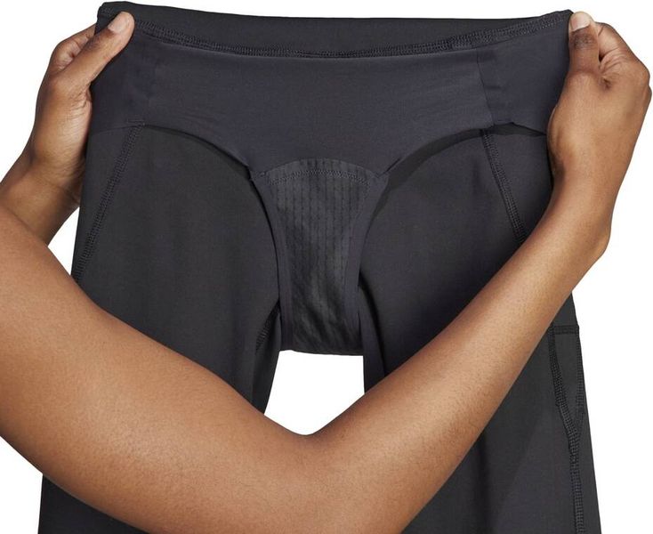 Die neuste adidas Running Kollektion überzeugt mit edgy Style und ablenkungsfreiem Komfort. Der Fokus liegt hier ganz klar auf Performance und damit sind die Pieces ideal für intensives Lauftraining. So kommt auf deiner nächsten Runde der Spaß garantiert nie zu kurz. Wir präsentieren die Run Essentials Stay in Play 7,8-Leggings. Sie hat ein sleekes, Halt gebendes Design und punktet mit feuchtigkeitsabsorbierender AEROREADY Technologie. So sorgt sie Kilometer für Kilometer für ein angenehm trockenes Tragegefühl. Dieser Gamechanger kommt mit einem äußerlich nicht sichtbaren, feuchtigkeitsabsorbierenden Pad und einer auslaufsicheren Membran. Trag die Leggings zusammen mit einem Hygieneartikel deiner Wahl (Cup, Tampon oder Binde) und du kannst dich bei deinem Lauf voll auspowern – egal an welchem Tag im Monat. Die reflektierenden Details sind stylish und funktional zugleich und runden das Design perfekt ab.