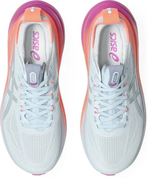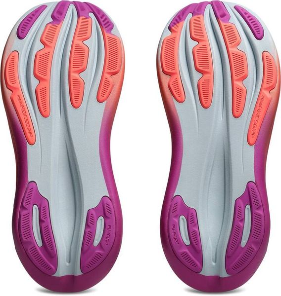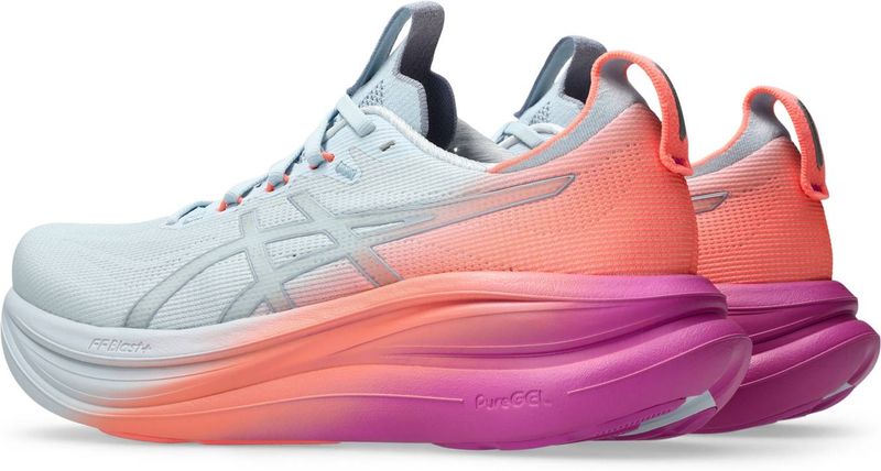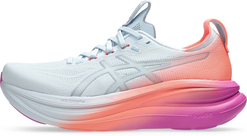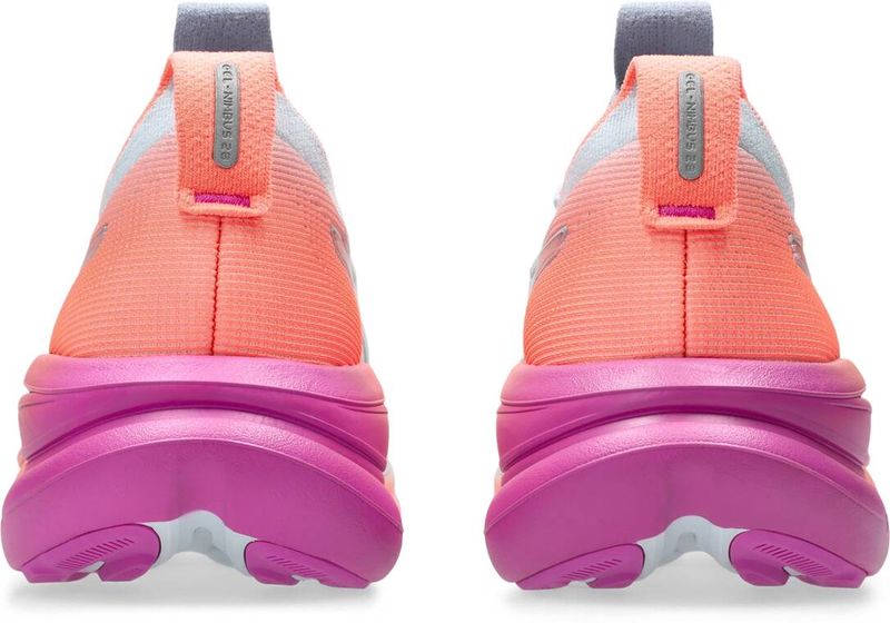 Der GEL-NIMBUS™ 28 SUNNY SIZZLE gehört zu den bequemsten Modellen in der Laufschuhpalette von ASICS. Dieser Schuh bietet eine hervorragende Dämpfung für ein angenehmes Laufgefühl auf längeren Strecken. Die Mittelsohle verfügt über eine Kombination aus FF BLAST™ PLUS Dämpfung und PureGEL™ Technologie. Diese Komponenten sorgen für ein leichtes und softes Dämpfungserlebnis, das sich anfühlt, als würdest du auf Wolken landen. Inspiration für die Kollektion: Als Teil der SUNNY SIZZLE-Kollektion ist dieses Pack von den Farben inspiriert, die du beim Laufen bei Sonnenauf- oder -untergang (Golden Hour) siehst. Das leichte Mesh-Obermaterial ist sublimiert und sorgt dafür, dass deine Füße beim Laufen im Frühling und Sommer angenehm kühl und komfortabel bleiben. Ein einzelner Gradient-Spritzstrahl auf Obermaterial und Mittelsohle rundet die von der Golden Hour inspirierten Farbtöne ab.