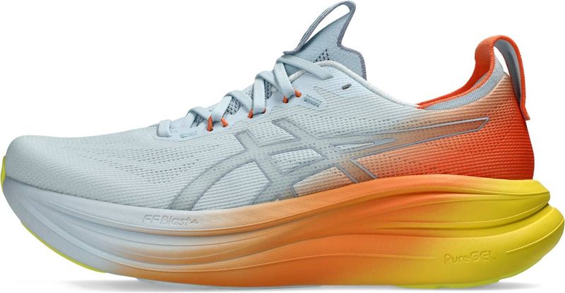 Der GEL-NIMBUS 28 SUNNY SIZZLE gehört zu den bequemsten Modellen in der Laufschuhpalette von ASICS. Dieser Schuh bietet eine hervorragende Dämpfung für ein angenehmes Laufgefühl auf längeren Strecken.