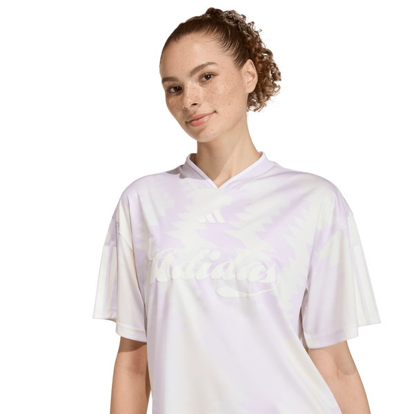 Fußball trifft auf Mode mit dem HOUSE OF TIRO X COMMON GOAL TRIKOT. Inspiriert von den lebendigen Fußballgemeinschaften Mexikos verkörpert dieses HOUSE OF TIRO X COMMON GOAL TRIKOT den Geist der Einheit und des Stolzes. Es hat einen auffälligen Allover-Print, der von Mexikos reichem Fußballerbe inspiriert ist. Die locker geschnittene Passform und der gerippte Halsausschnitt verleihen ihm einen lässigen Look und machen es zu einer fantastischen Wahl sowohl auf dem Platz als auch abseits davon. Das 3-Balken Logo auf der Brust und die klassischen 3-Streifen auf den Ärmeln sorgen für leichtherzige adidas Vibes. Feier mit uns die universelle Kraft des Fußballs und die Freiheit, die das Spiel bringt. Mit diesem HOUSE OF TIRO X COMMON GOAL TRIKOT trägst du nicht nur ein Kleidungsstück. Mit jedem Tragen erzählst du die Geschichte von Tradition, Innovation und Gemeinschaft.