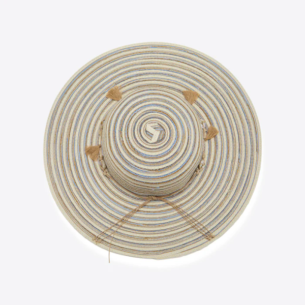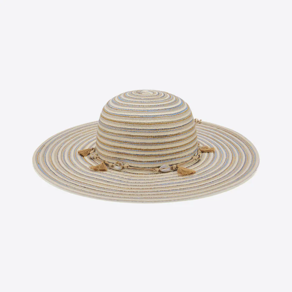 Der lässige Santa Fe Hat schafft eine perfekte Balance zwischen Style und Funktion. Seine gestreifte Optik und das geflochtene Hutband mit dekorativen Quasten und Muschelelementen verleihen jedem Outfit ein entspanntes Urlaubsflair – der perfekte Strandhut für sonnige Tage.