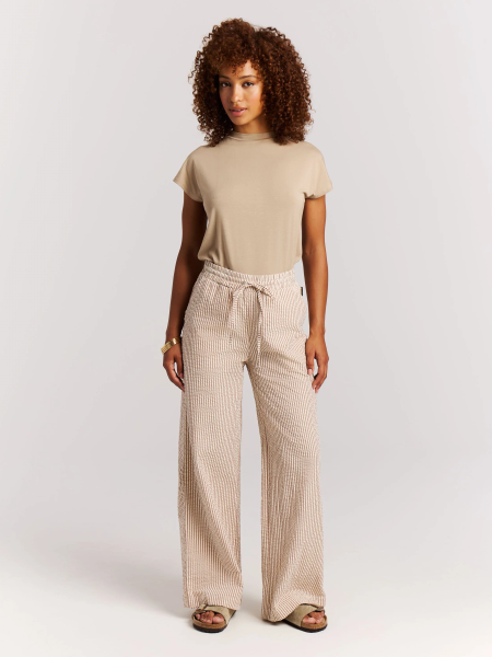 Die PRTMacer von Protest ist eine luftige Hose mit verspieltem Streifenmuster. Der geschmeidige Stoff und der elastische Bund mit Kordelzug sorgen für höchsten Tragekomfort. Perfekt für Sommertage, Strandspaziergänge oder einen entspannten City-Look. Die PRTMacer bringt eine Portion Protest-Freiheit in jeden Schritt.