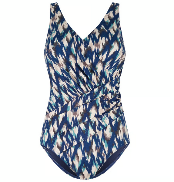 Wunderbar angenehm zu tragen und dazu noch stylisch. Dieser Badeanzug mit V-Ausschnitt und etwas breiteren Trägern sorgt für eine tolle Passform. Die weichen Cups und Nähte formen nicht nur eine schöne Silhouette, sondern bieten auch optimalen Halt. Das elastische Unterbrustband gibt zusätzlichen Halt. Gut zu wissen: Dieser Badeanzug ist perfekt für regelmäßige Schwimmerinnen, da er komplett chlorbeständig ist. Er ist in verschiedenen Mustern erhältlich. Welches gefällt Ihnen am besten? Er besteht aus 100 % recyceltem Polyester. Nachhaltig für Sie – perfekt fürs Schwimmen – und für die Umwelt.