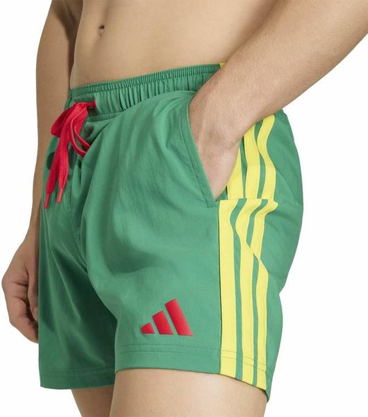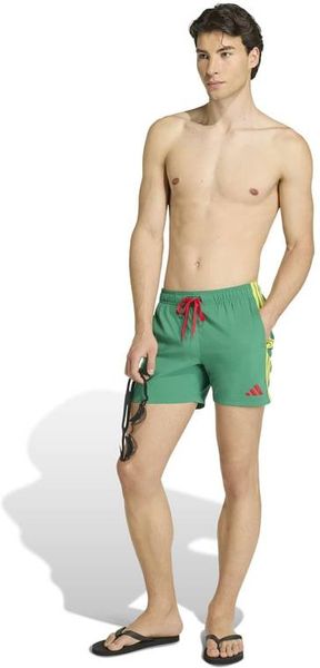 Tauche ein in Komfort und Style mit der adidas 3-Streifen Badeshorts in 5-Inch-Länge. Diese Badeshorts sind perfekt für alle, die Spaß am Wasser haben – ob beim Training oder beim entspannten Schwimmen. Das leichte, einfach gewebte Material trocknet schnell, sodass du schnell für das nächste Abenteuer bereit bist. Der voll elastische Bund mit Kordelzügen gewährleistet einen sicheren Sitz, während der Innenslip aus Mesh für zusätzlichen Komfort sorgt. Mit praktischen Seitentaschen und dem ikonischen 3-Streifen Branding vereinen diese Shorts Funktionalität und Style. Die Badeshorts in regulärer Passform bieten die perfekte Balance aus Bewegungsfreiheit und Halt – eine vielseitige Ergänzung für deine Schwimmausrüstung.