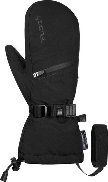 Angenehm warmer und wasserdichter Fausthandschuh von Reusch mit langem Abschluss, verstellbarem Verschluss am Handgelenk sowie einer Heizkissentasche auf der Rückseite zum Einführen von externen Wärmekissen an sehr kalten Tagen.